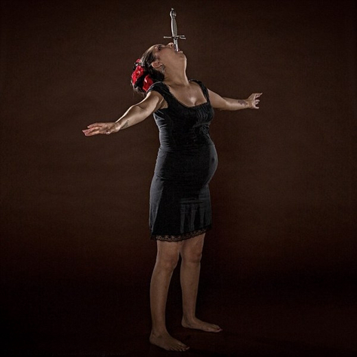 美国孕妇怀胎9月坚持表演高危险吞剑术