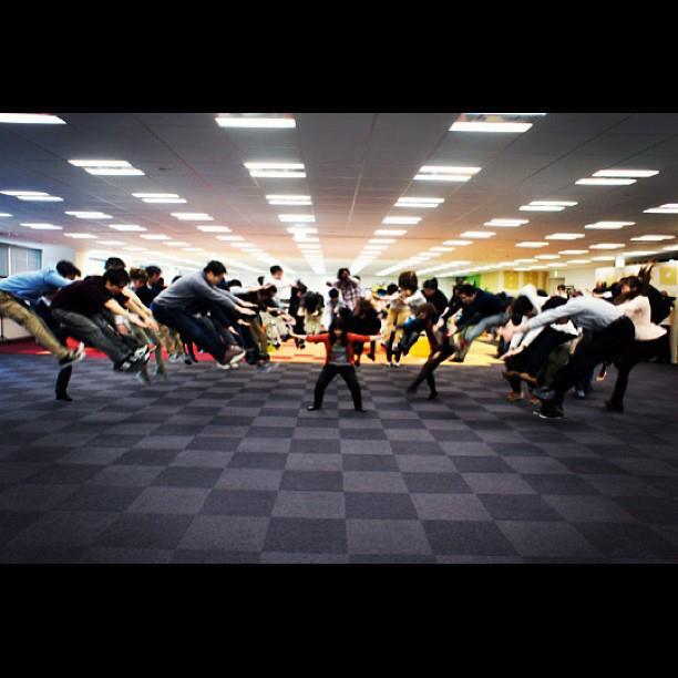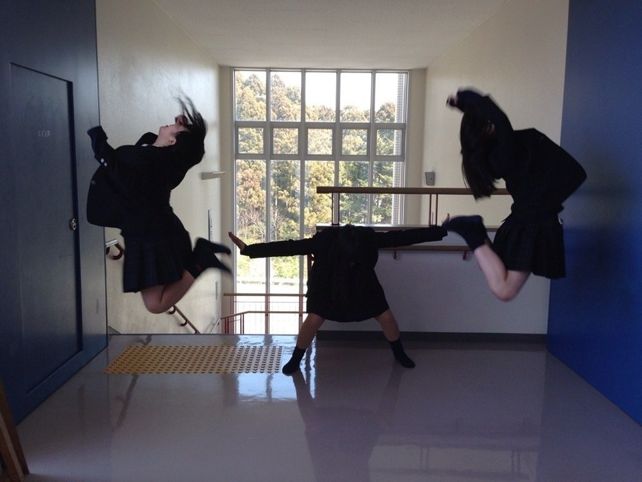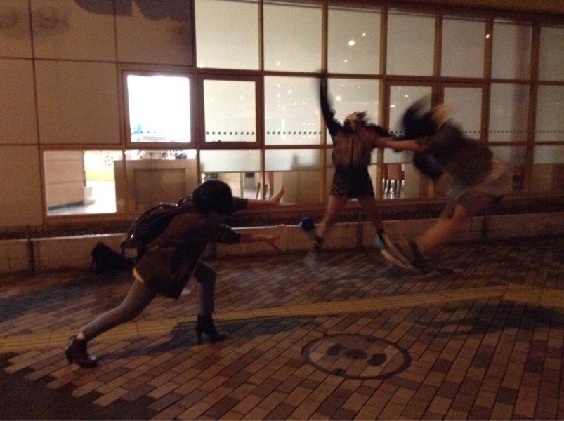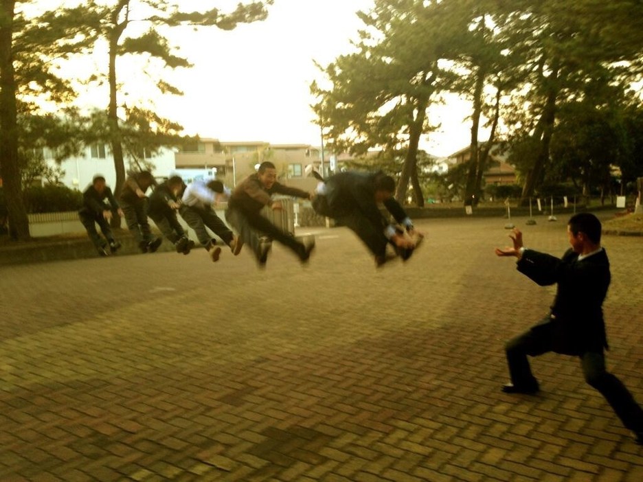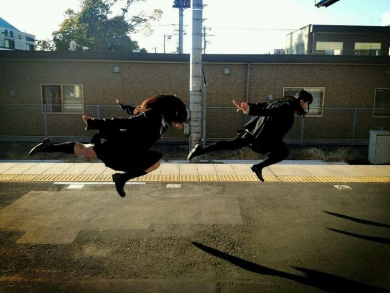 “气功波”自拍法属于摆拍。“中间‘发功者’先摆好姿势,四周的人听口令同时起跳就能拍出这种效果。”拍摄时,相机光圈应选择介于5.6~8,需要根据现场光线确定;快门速度一般在1/500秒就可以很清晰。构图上,只需要对焦到“发功者”即可,“四周起跳后是虚的,反而有一种动静之感。”