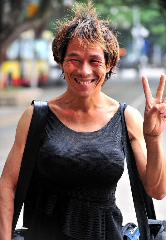 前天,广州珠江边,一男子穿着性感的超短连衣裙,挺着超大的假胸,引得不少路人侧目观看。据该男子介绍,他叫黎中(音),是到广州找工作的。他很喜欢自己的这身装扮,至于他的胸是怎么做成的,他说“不能告诉你”。但是,他对于拍照片很感兴趣,主动摆出各种POSE。