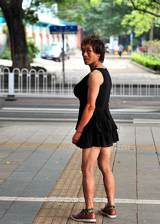 广州街头惊现短裙猛胸伪娘