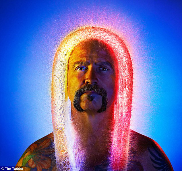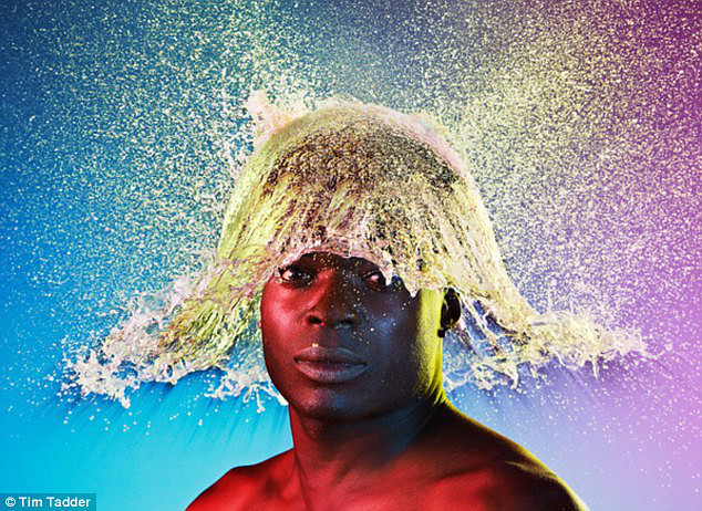 水也能做假发?当然不能,不过可以制造出一种假发效果。据英国《每日邮报》8月25日消息,美国摄影师Tim Tadder找到一群光头男子,把水气球奋力掷向他们的头顶,利用极高速度的照相技术配合着创意灯光,抓拍到水在他们头上溅开那一瞬间产生的景象。