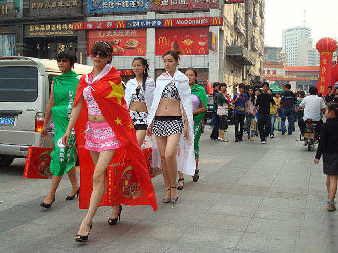 中秋节美女组团街头送月饼(组图)