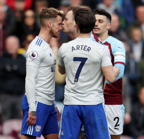 伯恩利前锋巴恩斯亲吻卡迪夫后卫本内特