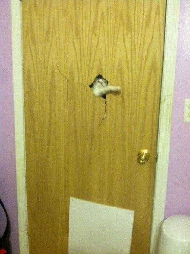 可怕的喵拳连门板都可以轻易打爆!