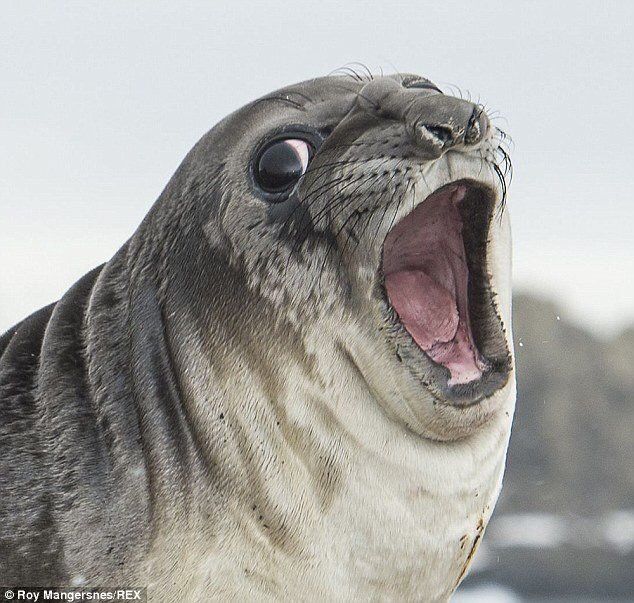 被小企鹅幼仔致命一击,正中屁股的海豹。。。
