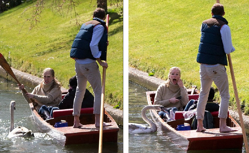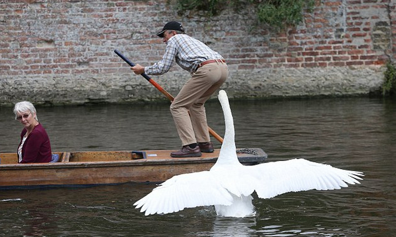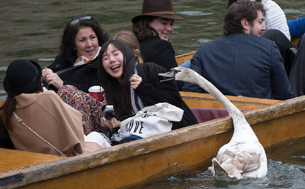 这两天剑桥又出现了一只各种袭击游客的天鹅!