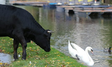 2014年。。剑桥的河里又冒出了一只无恶不作的天鹅。。。。
