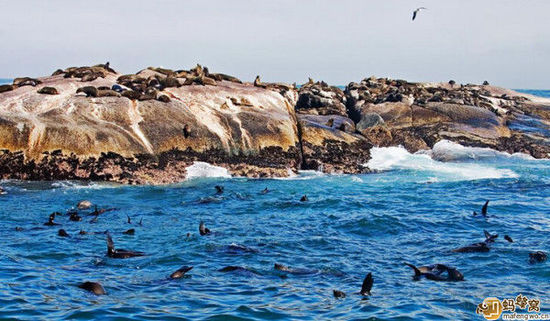 南非福尔斯湾的一座岩石小岛上生活着接近6万只软毛海豹,除了可爱的海豹之外,你还能在岛上看到小群的海鸥、鸬鹚和企鹅。