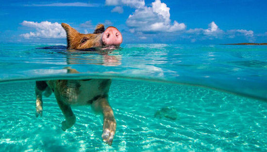 只能说这里的猪是幸福的,之前巴哈马群岛游泳猪蹿红网络,猪岛因此闻名。这些猪会与游人一起游泳,并会讨要食物,许多人上传了记录自己与猪共游的搞笑视频。