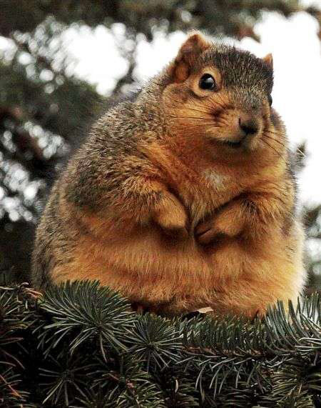 2012年3月,外媒刊登了几张美国贪吃松鼠变成大胖墩之后的图片。据悉,动物爱好者詹姆斯在家门外设置了动物喂食点后,这只松鼠就成了常客。于其他松鼠将坚果等藏起来以备过冬的行为不同,这只松鼠总是一次性把所有的食物都吃光,结果久而久之就变成了大胖子,为此詹姆斯不得不打算为其改喂低热量的食物。
