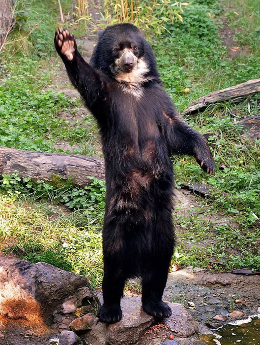 2012年11月的一组外媒图片揭露了贪吃黑熊为讨要食物卖萌讨好的图片。在德国杜伊斯堡动物园中,一只名叫“万卡”的熊为索要更多食物,站起来向管理员挥动前掌,十分风趣,萌态十足。吃完坚果后,它并没有大声嚎叫着索要食物,而是模仿饭店里客人的样子站起来,来吸引管理员的注意。看来是,高傲诚可贵,食物价更高啊!
