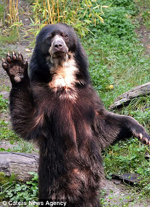 据英国《每日邮报》11月7日报道,近日,在德国杜伊斯堡动物园中,一只名叫“万卡”(Huanca)的熊为索要更多的食物,站了起来向管理员挥动前掌,十分风趣,萌态十足。