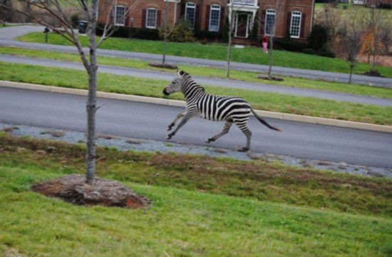 2011年12月,美国弗吉尼亚州一家动物园因为工作人员忘了锁上斑马住处的大门,两只斑马顺利逃出动物园,在当地大街上飞奔,好像电影《勇敢者的游戏》中的场景,居民们见此场景立刻报警。这两只斑马最终被当地警方用麻醉飞镖射中,之后被遣送回动物园。