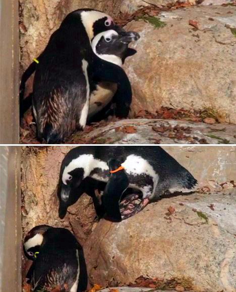 加拿大多伦多动物园的“巴迪”和“佩德罗”是两只雄的非洲企鹅,作为濒危品种,它们从俄亥俄州被转移到多伦多,对公众展出。但不久园方就发现,它俩的感情很要好,似乎超越了“朋友”关系。经观察,这两只企鹅每晚都一起度过,结伴而行,显示出企鹅异性之间才有的“配偶”行为,向对方发出“交配鸣叫”,平时还会与其他企鹅划分地盘,如同情侣一样,相亲相爱。2011年12月,多伦多动物园称,由于这两只企鹅是濒危物种,它们整天混在一起会减少与母企鹅交配的机会。据悉,在被强制分开后,其中一只企鹅觅得新的恋情,另一只还在等待真爱。