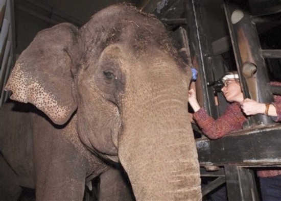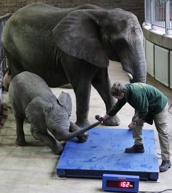 德国动物园进行动物大“体检” 倔强小象拒绝称体重