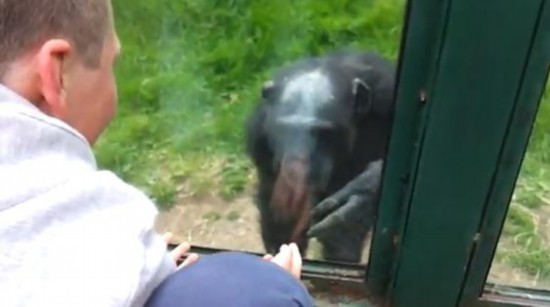 2012年8月,在英国威尔士山地动物园,一只黑猩猩不想再被关在“牢笼”里,反复用手比划求游客帮忙打开玻璃门的插销放它出去。据悉,在该动物园拍摄的视频持续约48秒钟。从视频中可以看到,一只黑猩猩被关在一个笼子里,只有一扇玻璃门可以通往外面的世界。这只黑猩猩看到有游客过来,就不断做手势希望他们能将门打开,放它出去。它先用手指着玻璃门,然后模仿打开螺栓的手势。它不断将手指交叉,做出一个类似于美语手语中“门”的手势,让游客开门。