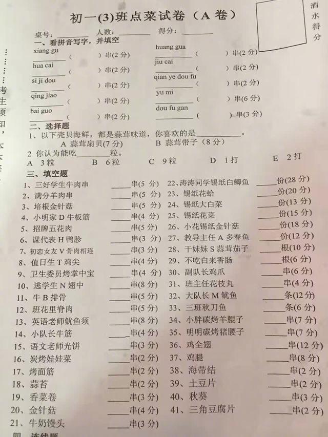 吃饭点个菜还要做试卷,这饭我不吃了