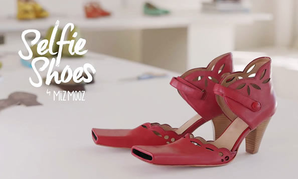 MIZ Mooz一个来自纽约的鞋类品牌,这双高跟鞋的头部设计非常有看点,它可以插入一部手机,腿就变成了杆,抬腿、微笑、咔嚓,自拍完成。当然这对腿脚是考验,如你腿脚不行,无法完成高难度动作,自拍效果也大打折扣。
