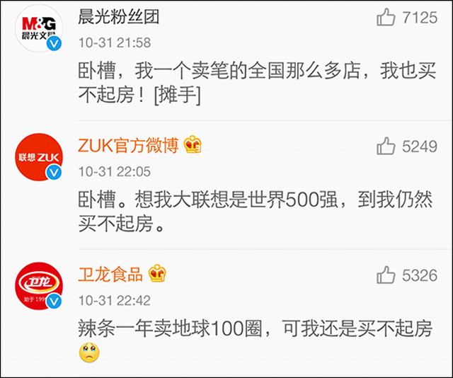 这一句买不起房,炸醒了各大品牌。近万个条官博评论列着然而我还是买不起房的整齐队列,怼起了中国首富。