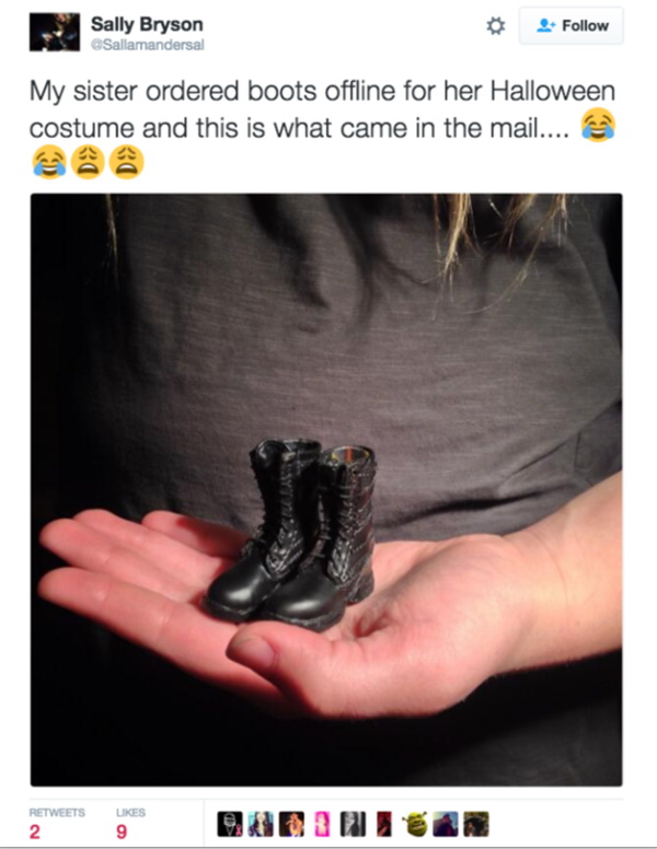 我妹妹网购了一双鞋准备过万圣节。。。