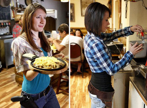 这家位于科罗拉多州的餐厅名叫射手,与其店名相符的是,这家餐厅的老板,让店内的女店员全都配枪上班,他们还鼓励顾客们也这么做。据悉,这家餐厅位于当地一个名叫来福的小镇,公共场合持枪在这里是合法的。
