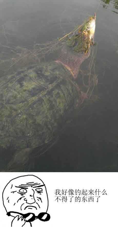 鱼咬钩了,龟咬鱼了?是鱼头。。。吊起来后发现后面有头乌龟咬着