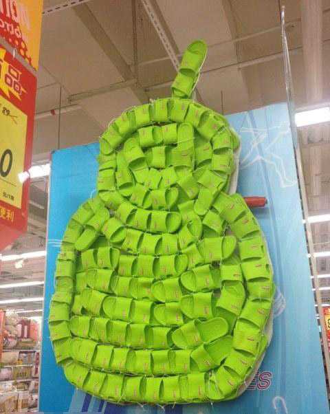 超市堆放货物的都是奇才,看看这拖鞋