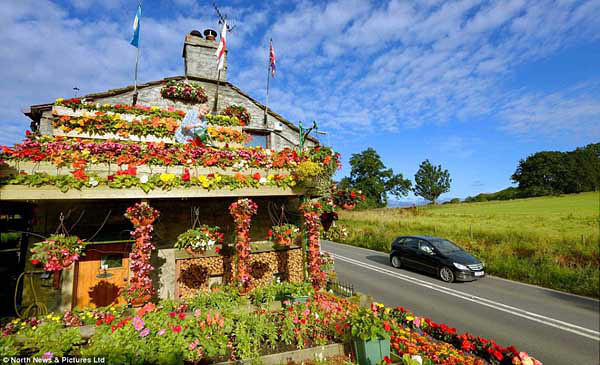 26年来,英国北约克郡鲁宾和安妮夫妇把业余时间都用来养花,每年都要花数百英镑用来买种子和植物,而回报则是,每到夏天,他们家的房屋都被五颜六色的花簇拥着、覆盖着,成为一道美丽的风景。过往的开车人也被美景打动,夫妇二人每年都会收到不相识的人寄来的卡片。