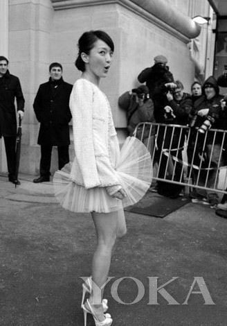 穿着俏丽短裙亮相的雪莉被风掀裙,裙摆飞扬似乎大风在跟她开了一个小小的玩笑