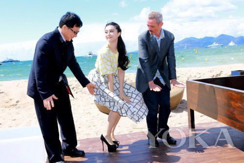 遇到大风第一个反应就是压裙,但如何做的优雅,那就来看看范冰冰吧