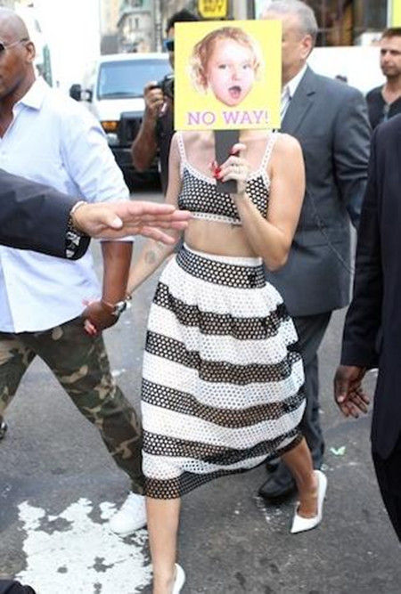 4、Miley Cyrus举牌遮脸。(选一个有个性的头像做牌子更拉风。)