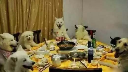 二汪们的聚餐,还挺有规矩的......
