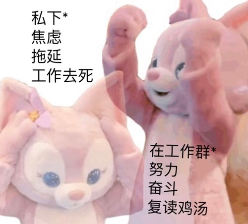 私下焦虑拖延工作去死在工作群*努力奋斗复读鸡汤 - 玲娜贝儿表情包