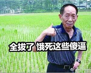 袁隆平:全拔了,饿死这些傻逼恶搞表情 恶搞 袁隆平 饿死 傻逼 DIY斗图 2025-07-07 08:44 袁隆平 (首届国家最高科学技术奖得主、杂交水稻之父),此图是网友恶搞,没有诋毁袁隆平爷爷的意思。主要是用此图调侃对网友的不满,嫌他们吃饱了没事干。