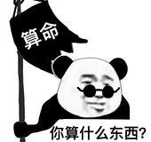 熊猫头手拿写着算命两字的幡子问对方算什么东西的算命表情包