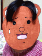戴着面具弄头发的搞怪女生