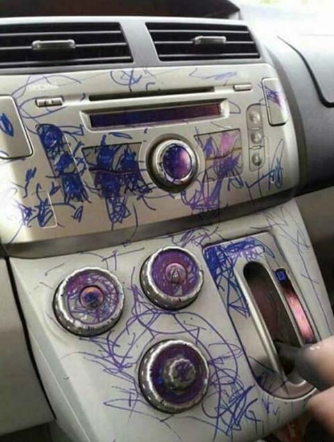 熊孩子干的好事,爸爸妈妈的车添光彩啦!