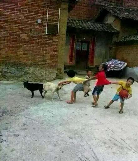 熊孩子们这是在给狗狗帮忙,孩子们抄心了!