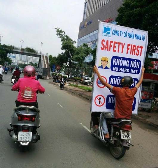 安全提示牌,别忘了带安全帽......