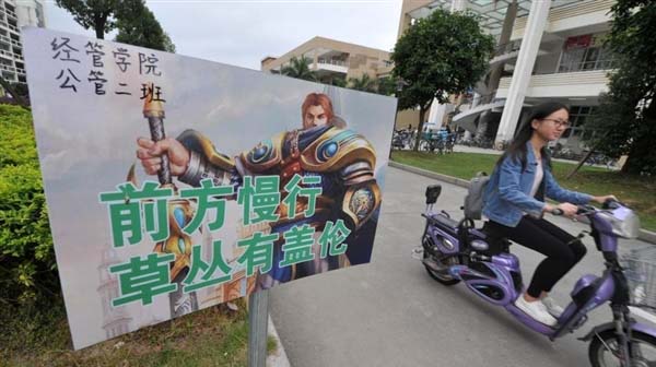 福州大学校园里的交通安全警示牌亮了