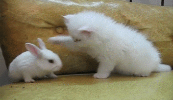 可爱小兔兔被汪星人调戏啦