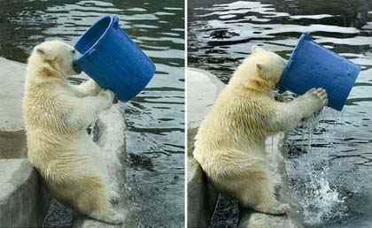 战斗民族呆萌北极熊端桶喝水 一饮而尽憨态可掬