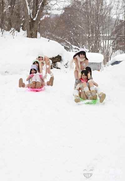 真的不冷吗?!日本女星穿比基尼雪地打雪仗